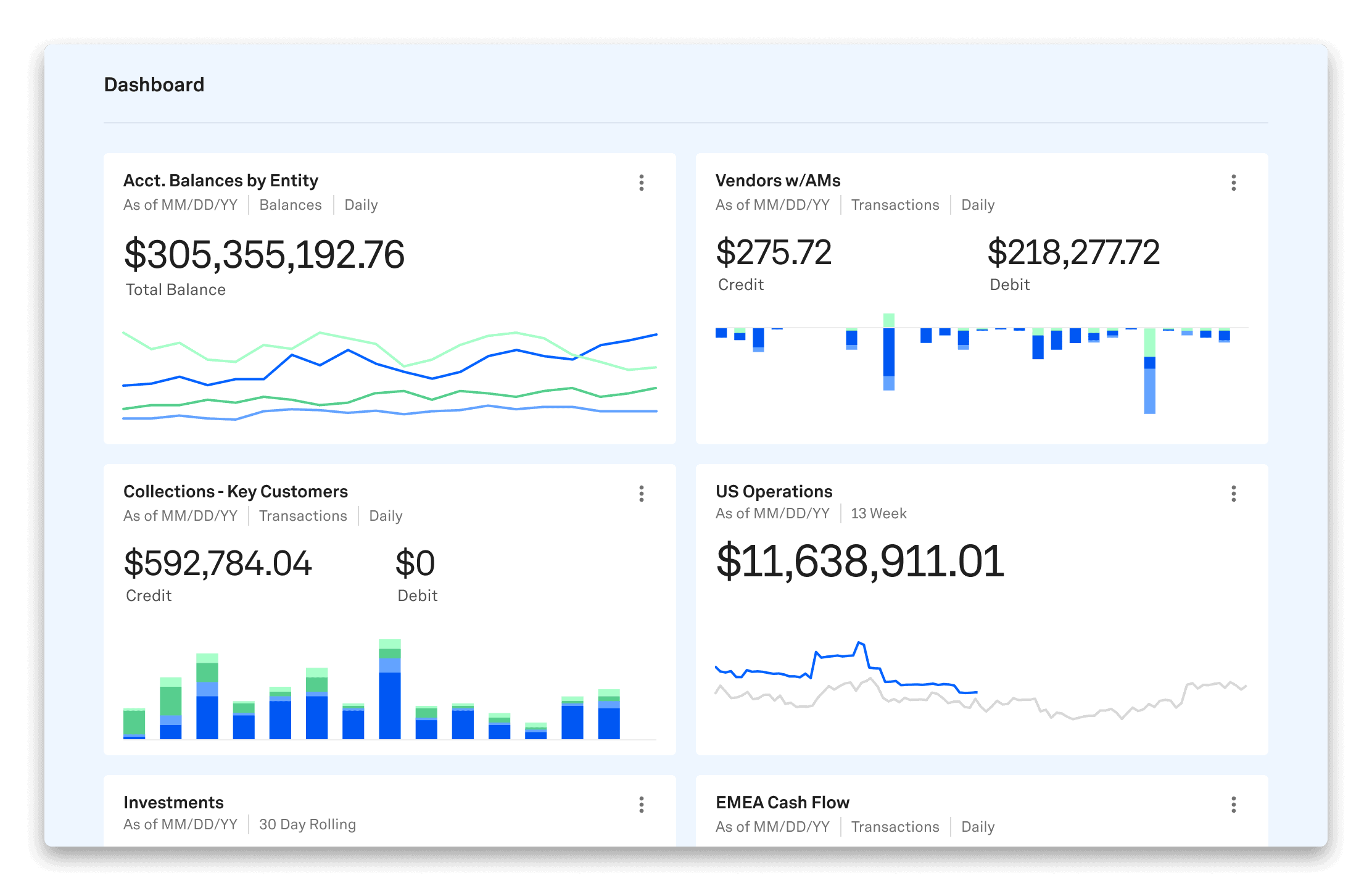 By directly connecting your organization’s bank accounts to a centralized platform, APIs provide real-time, automated updates on cash balances across all accounts. This eliminates the need for manual data pulls and normalization, giving you up-to-the-minute visibility into your cash position.